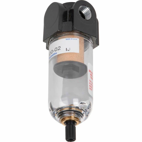 1/4″ mini filter, poly bowl, 20 micron, 27 SCFM, 150 PSI max
