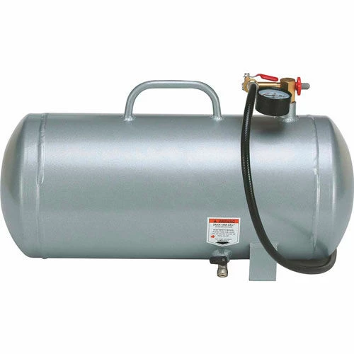 California Air Tools AUX05A – 5 Gallon Aluminum Auxiliary Air Tank is designed for portability and easy to use. The No Rust Aluminum Air Tank is lightweight (8.5 lbs) and easy very easy to carry and transport. California Air Tools auxiliary air tanks are designed to provide an extra supply of air needed for short-term demands such as inflating tires. These auxiliary air tanks provide stable pressure and a constant air flow for purposes such as spray painting. Having the California Air Tools auxiliary air tanks will allow you to have an extra supply of air for more time before the air compressor motor/pump starts to run. The Easy to Use Quick Connect Fittings on the Air Hose and Air Valve allows you to quickly attach the Air Hose to an air compressor and fill the auxiliary air tank without needing extra air fittings. This Easy to Use Quick Connect System also allows you to connect a standard air hose to your air valve for use with air tools. More Air, Less Noise and Easy to Use, California Air Tools Auxiliary Air Tanks!