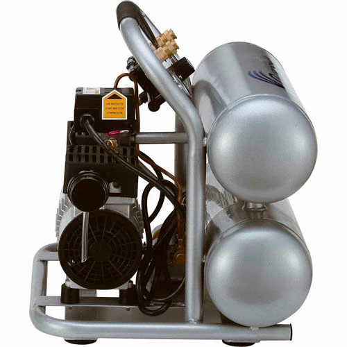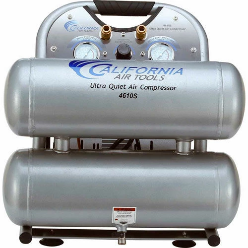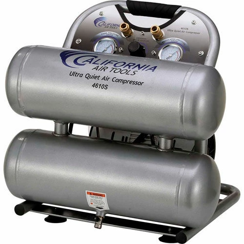 The CALIFORNIA AIR TOOLS4610S Ultra Quiet & Oil-FreeAir Compressor is designed to be one of the quietest air compressors in the industry having only60 decibels of sound. The powerful1.0 HP (SP-9413) motor operates at only 1680 RPM creating less noise and less wear. The “New” SP Series of Ultra Quiet Air Compressor Motors have been designed to increase duty cycle and allow for longer continuous run times. The Oil-Free Dual Piston Pump System is engineered for high performance and durability. TheCAT-4610S Air Compressorhas a Oil-Free Dual Piston pump designed to have a life cycle before wear of3000 Plus hours compared to other comparable air compressors with life cycles of500 hours or less. The Oil-Free pump allows for use in a variety of temperatures and uneven terrains. The4.6 Gallon Steel Air Tank is Lightweight (62 lbs), durable and very easy to transport. This air compressor is ideal for anyone working inside where noise is a major issue.